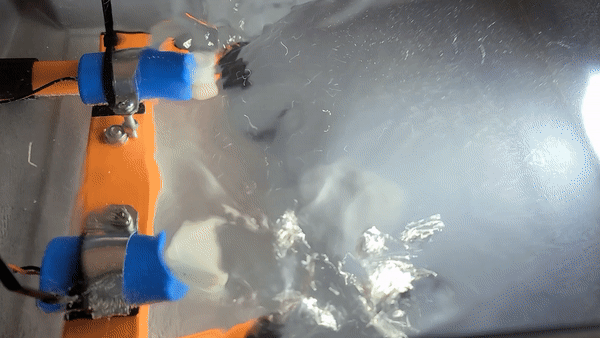 I was pretty dissapointed at first by the power output, but I quickly learned that the motors were capable of handling around 12V. This resulted in water being thrown from my testing tank, perfect!